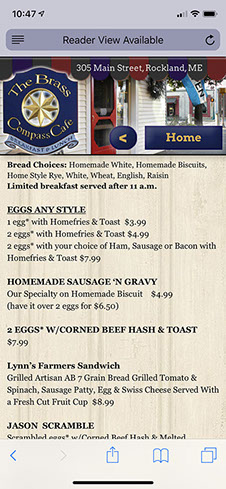 The Brass Compass Cafe no longer has an active website - if you'd like to preview the original design, preview it here.