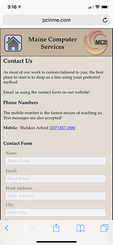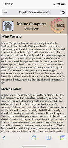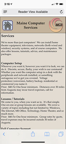 Desktop website & custom mobile web experience built for a computer repair technician in Augusta, Maine.